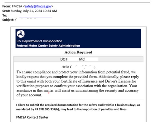 These emails are designed to appear legitimate, complete with the FMCSA logo and formatting that closely mimics genuine correspondence. However, the content and information requested are clear red flags for those in the know.
